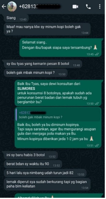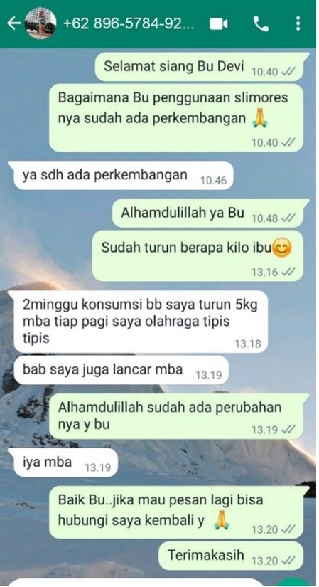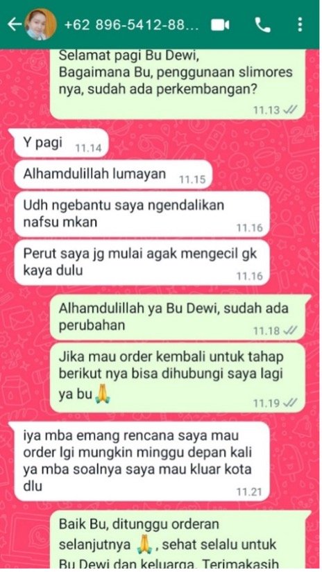 Rani pun mencari tahu tentang produk tersebut dan merasa termotivasi oleh informasi yang diberikan oleh Dr. Kelly Choi dan memutuskan untuk mencoba Slimores sebagai bagian dari usahanya untuk mencapai tubuh yang lebih sehat. Hasilnya, setelah beberapa minggu mengkonsumsi suplemen tersebut secara teratur, Rani merasakan perubahan yang signifikan. Tubuhnya terasa lebih ringan, energinya meningkat, dan berat badannya mulai turun dengan konsisten. Selain itu, gaya hidup dan pola makannya pun menjadi lebih teratur dan sehat.
